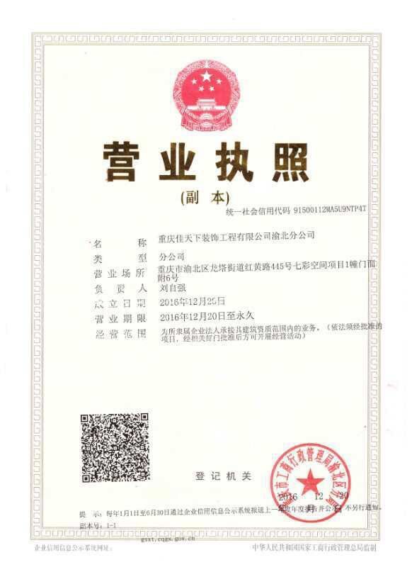 重慶佳天下裝飾工程有限公司,成立于2003年,是一家集設計、預算、施工、材料于一體的專業(yè)化裝飾公司,擁有國家二級資質(zhì)。