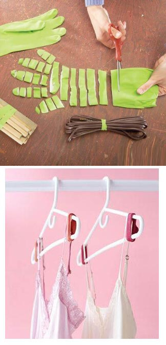 剩下的手套這樣剪裁好,栓在衣架上,吊帶的衣服就不容易被風(fēng)吹掉了。