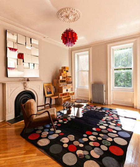 設(shè)計(jì)理念:鏡子置于客廳內(nèi),拓展空間視覺效果外,還能通過(guò)光源反射,提亮空間。加之鏡面為凹凸不平設(shè)計(jì),還能營(yíng)造玄幻感。