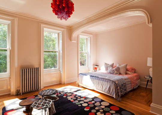 設(shè)計(jì)理念:讓臥室休閑區(qū)兩大空間穿梭自如的拱型過(guò)渡門,保持了空間的寬敞性,又沒有破壞其整體感,為空間增加線條美,柔化了空間。