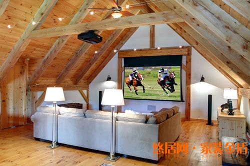 木質(zhì)吊頂也是閣樓裝修設(shè)計搭配的一個亮點。顯得清新自然,低矮的空間,作為音影區(qū),讓人放松,也很有安全感。