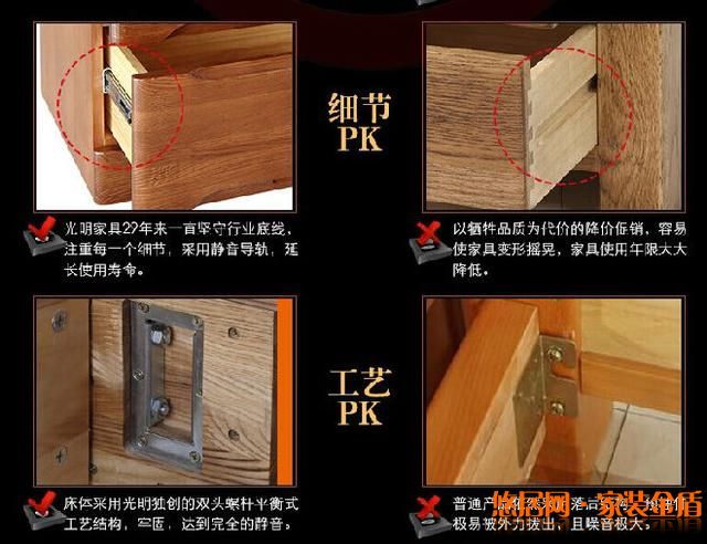 聽音辨味打開家具柜門、抽屜,聞聞看是否有刺激性氣味,實木家具的味道一般不太濃。敲擊木板,如果聽到的聲音是厚實的,就是實木。
