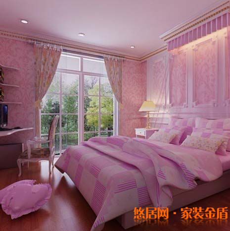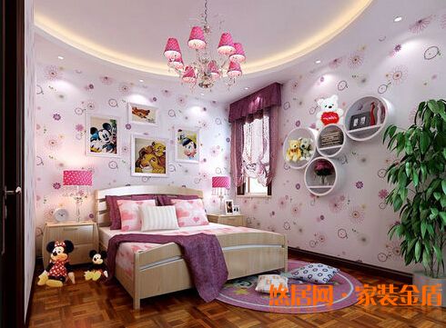 4.淺色小卡通的壁紙,可以消除煩躁的心情。如果你想要打造清新甜美的臥室,但又怕顯得幼稚,武漢裝修公司建議你可以用帶小卡通圖案的粉色系壁紙。