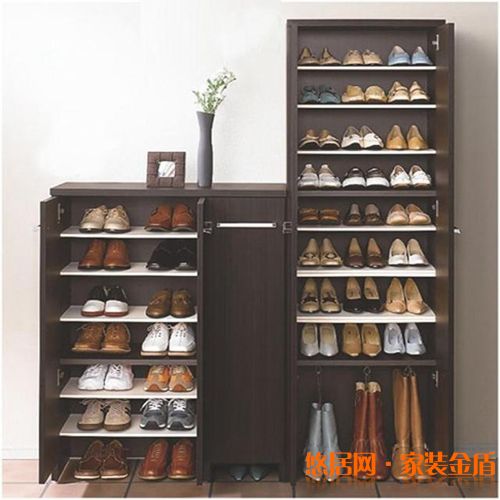 4、鞋柜必須留出一個較高(不低于45厘米)的隔層,以便于女士靴子、水靴的擺放,而且要保證足夠的深度(因為一些鞋盒有40厘米左右)。