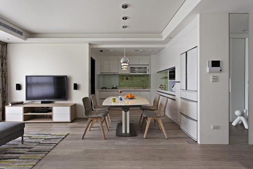 誤區(qū)二:劃分區(qū)域的地面裝飾,小戶型的空間狹小曲折,很多人為了突出裝修效果,突出區(qū)域感,會在不同的區(qū)域使用不同的裝修材質(zhì)與高度來加以劃分,天花也往往與之呼應,這就造成了更加曲折的空間結構和衍生出許多的“走廊”,造成視覺的阻礙與空間的浪費。