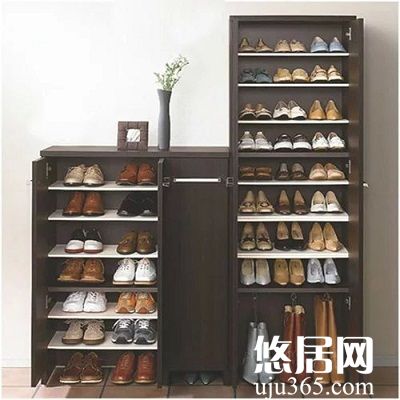 4、鞋柜必須留出一個較高(不低于45厘米)的隔層,以便于女士靴子、水靴的擺放,而且要保證足夠的深度(因?yàn)橐恍┬杏?0厘米左右)。