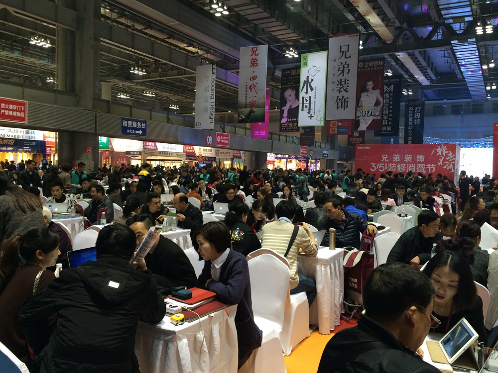 作為開年最火爆的活動,兄弟裝飾315金鑰匙裝修消費節(jié)在每天的8:30開館,而事實上很多消費者在8:00便到達(dá)現(xiàn)場等待。進(jìn)場后,與兄弟裝飾設(shè)計師洽談交流的消費者持續(xù)不斷,高峰期更出現(xiàn)幾戶家庭等待一位設(shè)計師交流的盛況。同時,在各建材商家展臺處,咨詢下單的客戶同樣很多,各商家工作人員持續(xù)性的為消費者服務(wù),幾乎沒有喘氣休息的空檔。特別是在第二天下午3點-5點,活動接近尾聲,現(xiàn)場收銀更一度出現(xiàn)壓力,等待結(jié)款的消費者打起了擁堂,火爆程度不言而喻。事實上,在活動兩天期間,組委會都已經(jīng)將活動閉館時間延長至晚上8點,以給予消費者更多的采購時間。