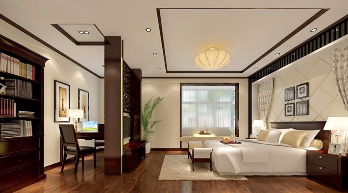 臥室:居室在色彩方面秉承了傳統(tǒng)古典風(fēng)格的典雅和華貴,加入了很多現(xiàn)代元素,呈現(xiàn)著時尚的特征。在配飾的選擇方面更為簡潔,流暢地表達(dá)出傳統(tǒng)文化中的精髓。為了給居室增添幾分暖意,飾以精巧的燈具和雅致的掛畫,使整個居室在濃濃古韻中滲透了幾許現(xiàn)代氣息。