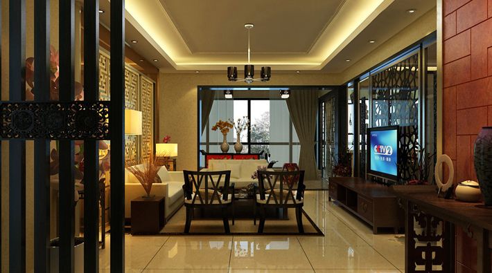 客廳:客廳是傳統(tǒng)與現(xiàn)代居室風(fēng)格的碰撞,設(shè)計(jì)師通常以現(xiàn)代的裝飾手法和家具,結(jié)合古典中式的裝飾元素,來呈現(xiàn)亦古亦今的空間氛圍為時尚與古典的柔媚結(jié)合。