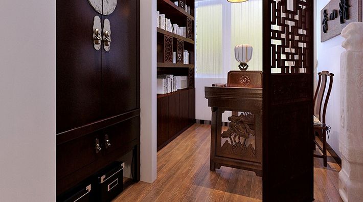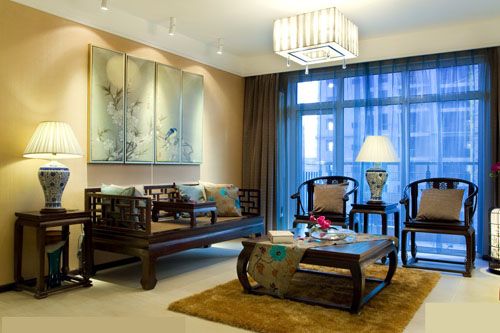 中式風(fēng)格是在室內(nèi)布置、線形、色調(diào)以及家具、陳設(shè)的造型等方面,吸取傳統(tǒng)裝飾“形”、“神”“色”的特征,室內(nèi)多陳設(shè)字畫、匾幅、掛屏、盆景、瓷器、古玩、博古、屏風(fēng)、架等,追求一種修身養(yǎng)性的生活境界。其中又融合現(xiàn)代西式家居的舒適,根據(jù)不同戶型的居室,采取不同的布置。