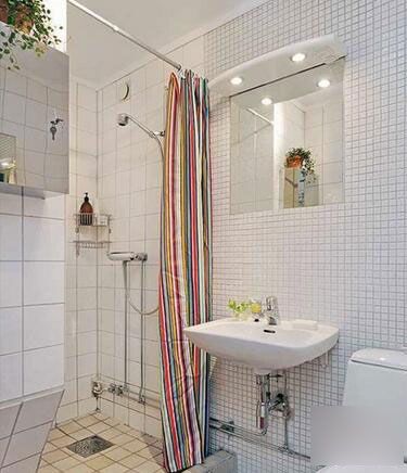 如果已經(jīng)家裝完畢又改造不易的浴室不妨選擇方便又美觀的浴簾,一是預(yù)算少,二是風(fēng)格各異,加一塊浴簾也能補(bǔ)救一下。浴簾能保證水珠不濺到干區(qū),但是不能阻止地上水流問題,那不妨在地上做防水條或者地漏。