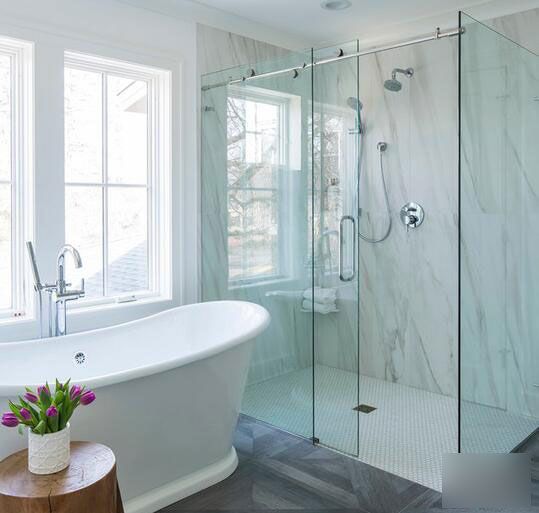 玻璃阻隔也是常見的方法,玻璃有半隔斷和全隔斷,做到完全干濕分離,全阻隔在冬天的時(shí)候也能聚集熱氣,但也注意做好換氣通風(fēng),最好選用上面不封頂?shù)牟AЦ魯唷6胱韪粼诓Aб崎T的下方也應(yīng)做好防水條。