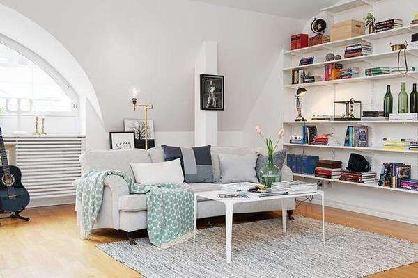 歐美電影里常常出現(xiàn)神秘又令人充滿好奇的閣樓場(chǎng)景,總是讓人想列入夢(mèng)想清單里,但受限于天花板向下傾斜不好規(guī)劃,往往也被拿來當(dāng)作儲(chǔ)藏室來使用。這間公寓,不但沒有被傾斜的天花板困擾,更因?yàn)殚w樓的先天優(yōu)勢(shì)采光良好。開放式的空間,讓屋內(nèi)不擁擠,空氣流通更順暢,陽光更充足。而書架直接用層板沒有邊框的設(shè)計(jì),也解決了傾斜天花板,不好擺放家具的問題,不但很有風(fēng)格,能收納的空間也是一流。如此清爽的小閣樓,你也想要住嗎?