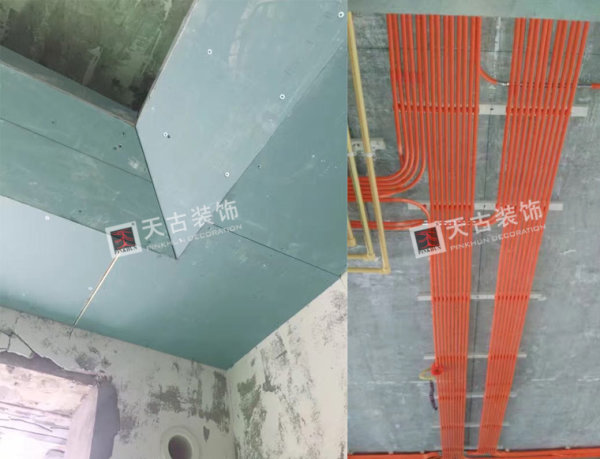 據(jù)天古相關(guān)負(fù)責(zé)人介紹,天古渝派精工水電工藝由“下水快排”、“管道保護(hù)”、“回路分組”、“管線安裝”和“連接器接線”五項(xiàng)核心工藝組成,能保障水電氣管線長(zhǎng)期使用的安全和可靠;木作工藝針對(duì)重慶天氣悶熱潮濕的特性,采用“輕鋼龍骨吊頂”、“七字拼接”、“木基層防潮”等工藝有效保障木作質(zhì)量;而泥作工藝獨(dú)創(chuàng)“墻地防水搭接”、“蹲便坑防滲”、“擋水門坎”、“瓷磚粘貼工藝”解決難題,有效防止廚衛(wèi)長(zhǎng)期使用后常見的緩慢滲漏煩惱和地磚上墻空鼓脫落問題;漆作工藝則對(duì)傳統(tǒng)漆作技術(shù)進(jìn)行了改良,加入防裂工藝,通過 “V形槽防裂”、 “PVC 護(hù)角”、“底面抹色”和“漆面著色”工藝,減少后顧之憂。