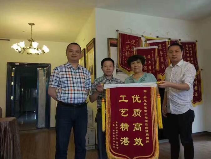 5月20日,劉女士手持印有“優(yōu)質(zhì)高效,工藝精湛”的錦旗,親自將錦旗送到新思路裝飾香奈公館接待中心。這是新思路裝飾在520之際收到的最美好的表白! 劉女士說:新思路裝飾是非常不錯的公司,貼心的服務(wù)和精湛的工藝讓我十分滿意 。特別項目經(jīng)理周潤祥,做事認真負責(zé),為我的新家盡心盡力,讓我十分感動。在這個浪漫的日子,新思路裝飾能獲得業(yè)主的錦旗告白,這將加倍激勵新思路裝飾的每一位家人,在未來用更好的服務(wù)為每位客戶!