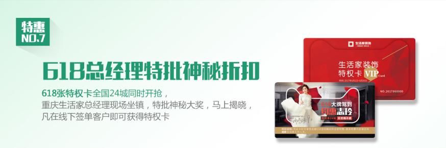 6.18期間,正值重慶生活家沖刺集團(tuán)A級公司的榮譽(yù)時刻,為此重慶生活家特推限量款產(chǎn)品“志玲款“,重慶生活家將不惜利潤作廢,抄底脫光!僅此一次,機(jī)會不容錯過,在本次活動期間簽訂的業(yè)主,除享受“志玲款”專屬報價外,更有設(shè)計費(fèi)半價、4000元專屬升級、軟裝包5折鉅惠、6.18換購歐琳全套水槽、等9大重磅特惠。更有618總經(jīng)理特批神秘折扣,享受專屬特權(quán)。