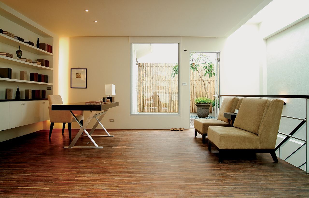 越簡潔越好,建議少擺放東西,一張書桌、一個(gè)靠墻的書柜、一床沙發(fā)足矣,案前工作倦了可以蜷在沙發(fā)休息一會(huì)兒、看會(huì)書。