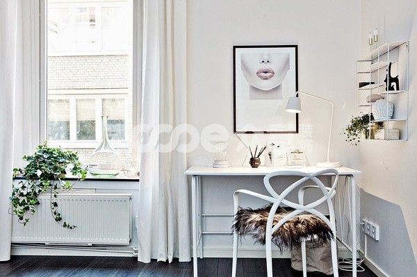 北歐的小清新,是不局限的裝飾特征,白墻是不可少的元素,體現(xiàn)純凈質(zhì)感。大面積的窗戶,光照充足,加上房間的白色主色調(diào),更顯得通透明亮。為了區(qū)別空間頂墻地三面,或灰色或木色的地板很好的中和了白色的單調(diào)。