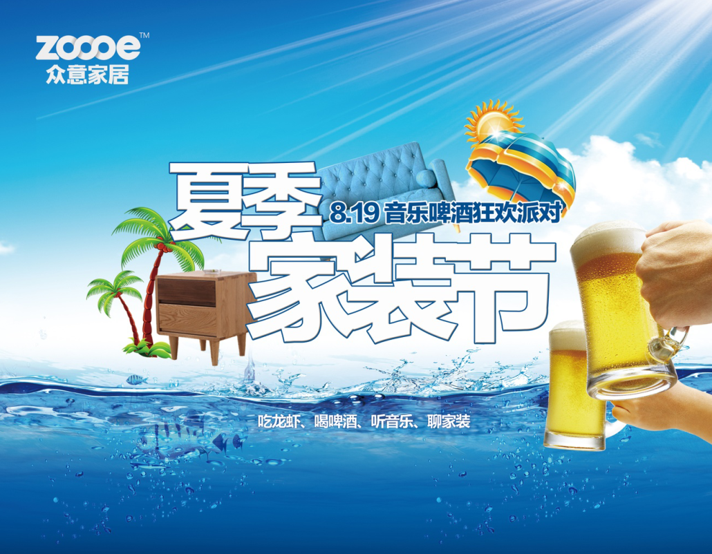 8月19日,眾意裝飾音樂(lè)啤酒狂歡節(jié),這里有9800㎡家裝體驗(yàn)館、專(zhuān)業(yè)設(shè)計(jì)師以及夢(mèng)想空間的藍(lán)圖,喝啤酒,吃龍蝦,聽(tīng)音樂(lè),我們一起聊聊有溫度的家居生活。