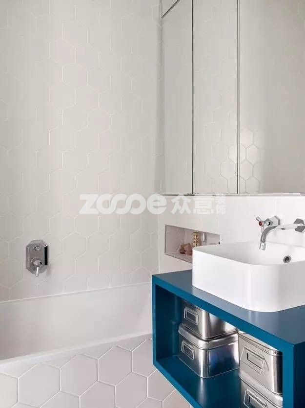 六角磚無(wú)處不在,單純的運(yùn)用白色瓷磚遠(yuǎn)沒(méi)有六角磚來(lái)的更有造型和設(shè)計(jì)感。
