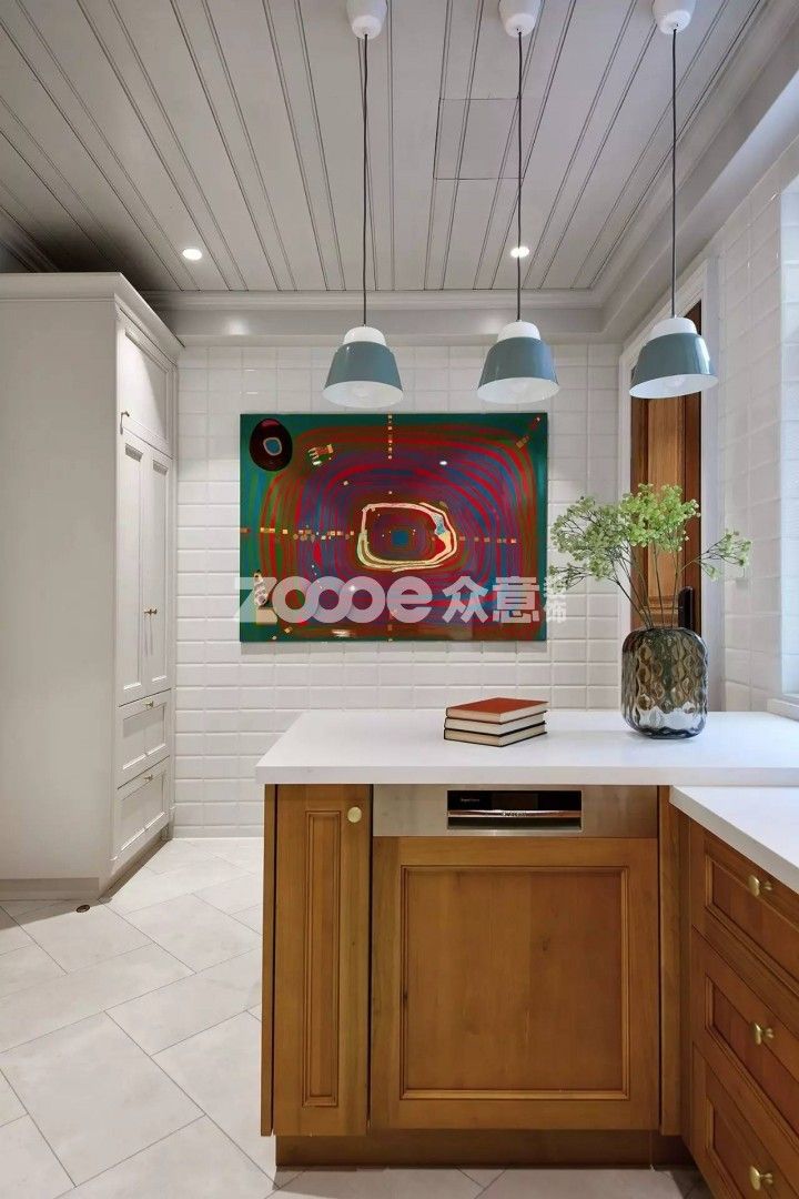廚房并沒有發(fā)揮眾意裝飾設(shè)計師天馬行空的想象,畢竟在廚房,通透敞亮和舒適愉快占據(jù)了家居文化中最大的兩部分;櫥柜采用了上下粉色的做法,讓層次更加明顯,不會一白到底。