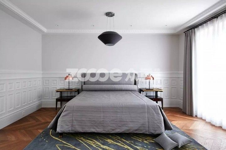 看出來了設(shè)計師非常喜歡利用護墻來表達空間的脈絡(luò)。仔細看,墻面的色調(diào)明顯與頂面的白色不同,淺灰色涂料將室內(nèi)的質(zhì)感與線條表達得更為立體,玫瑰金臺燈,紅過iPhone 7。