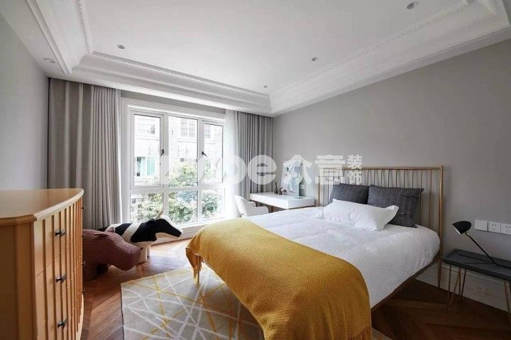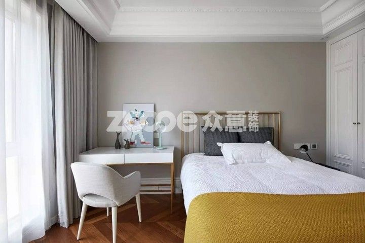 而大兒子房則相對顯得穩(wěn)重一些,運用當(dāng)下最流行的藕粉色,搭配英倫格子的床,在不同光照時,反復(fù)回味這其中的細節(jié)和質(zhì)感。