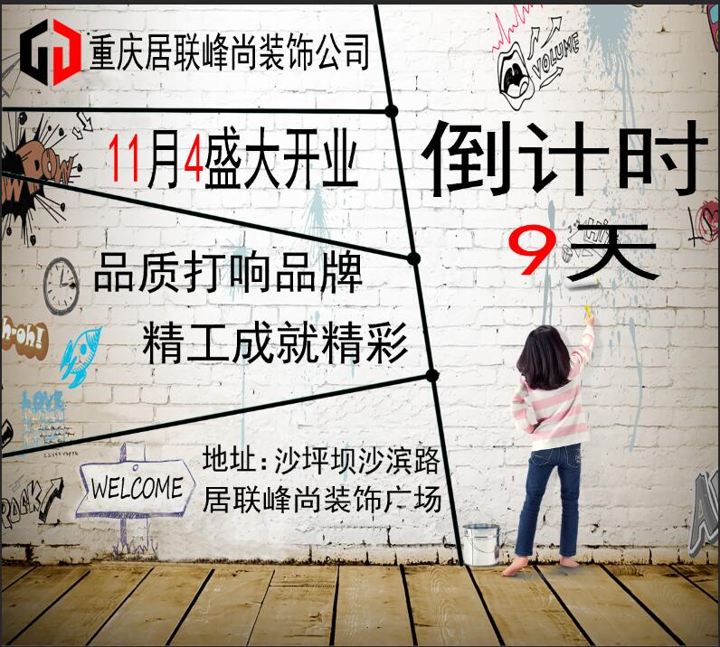 重慶居聯(lián)鋒尚裝飾試營(yíng)業(yè)即將結(jié)束,于11月4日重慶沙坪壩沙濱路國(guó)際創(chuàng)客港開(kāi)業(yè)啦!?。。?! 開(kāi)業(yè)活動(dòng)只有一次,我們?cè)诰勇?lián)峰尚等你。