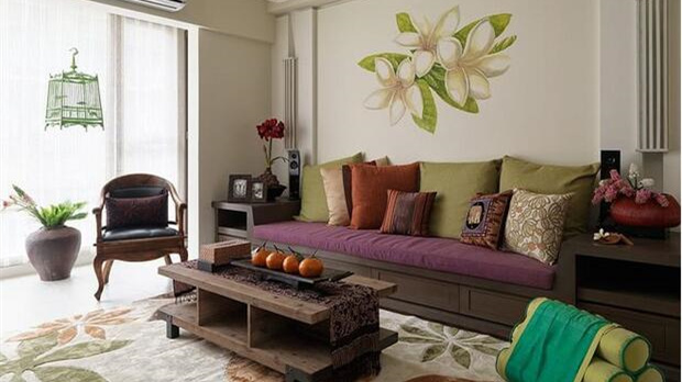 東南亞風(fēng)格裝修多以磚紅、草綠、紫色等暖色調(diào)為主,用在秋季,即使外面已經(jīng)落葉枯黃,屋里還是悠閑溫暖,格外具有生機(jī)。