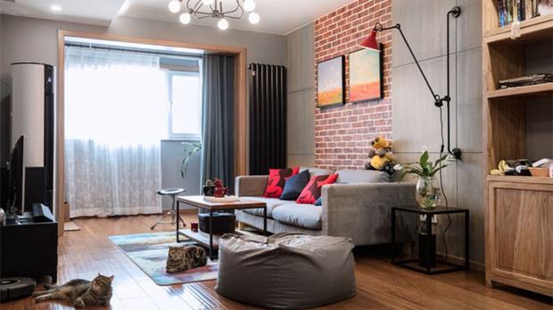裸露的墻磚、原木色的地板家具,帶來工業(yè)風(fēng)的力量感,讓人在室內(nèi)忍不住運(yùn)動起來,制造出溫暖的感覺。