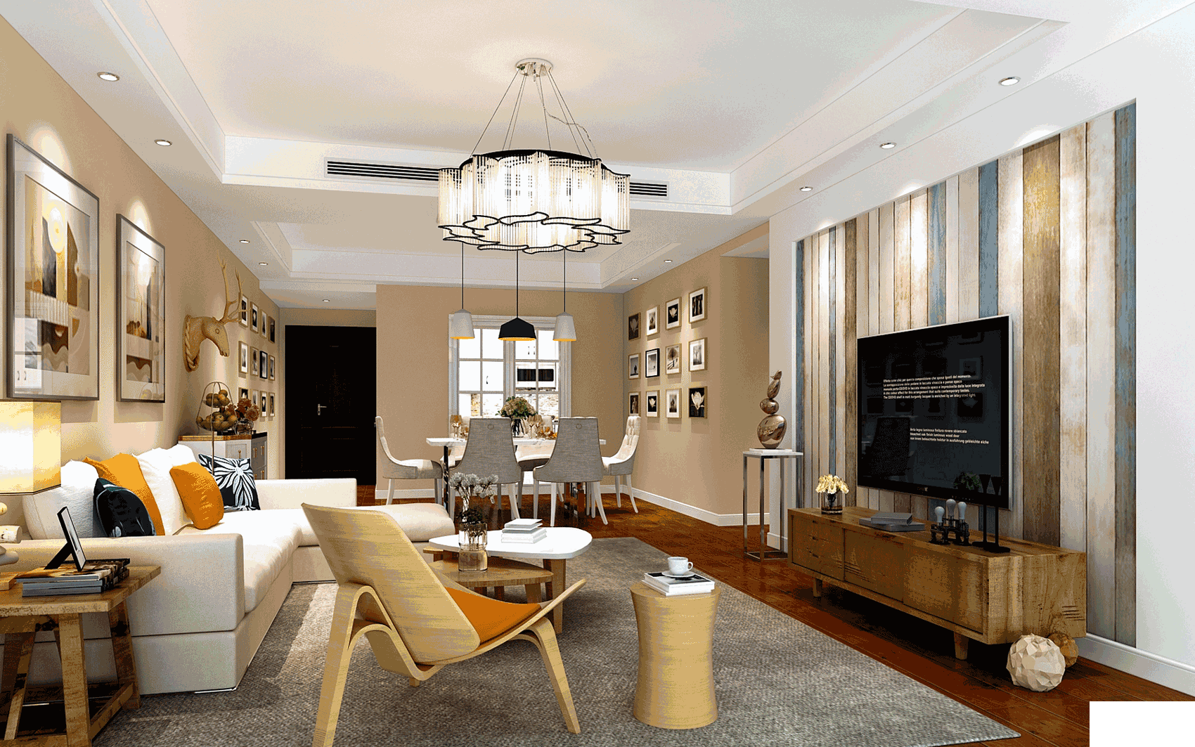 一眼看去,這套設(shè)計(jì)是典型的北歐風(fēng)格家裝,整體色調(diào)偏暖,營造出一種溫馨的氛圍,整套房子的墻面以米黃色作為大背景,單獨(dú)造型的陰角線、石膏線條則是純白,軟裝部分也與整體色調(diào)相契合,互相帶關(guān)系,讓整個(gè)空間和諧統(tǒng)一。