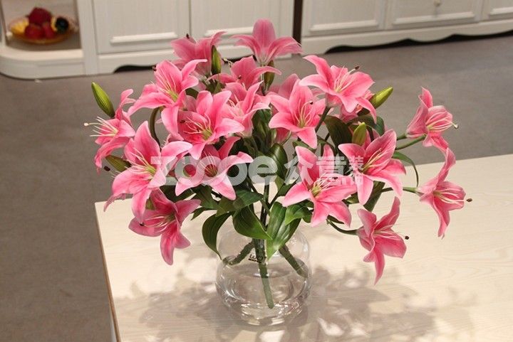 百合花花形典雅大方,花朵皎潔無疵,花香清香怡人。白色百合純潔無暇,黃色百合熱情溫暖,而粉色百合花甜美夢幻。廚房的餐桌或者臥室的床頭柜,擺上一瓶粉色的百合,營造的也是甜美與夢幻的家居氛圍,不知道你可喜歡?