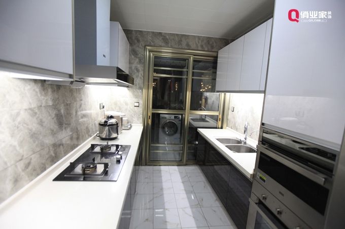 狹長(zhǎng)的廚房空間在現(xiàn)如今越發(fā)多見,那么盡可能的保留這個(gè)空間的活動(dòng)區(qū)域以及收納空間,則是設(shè)計(jì)師的設(shè)計(jì)重點(diǎn)。