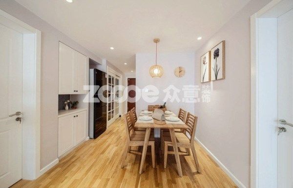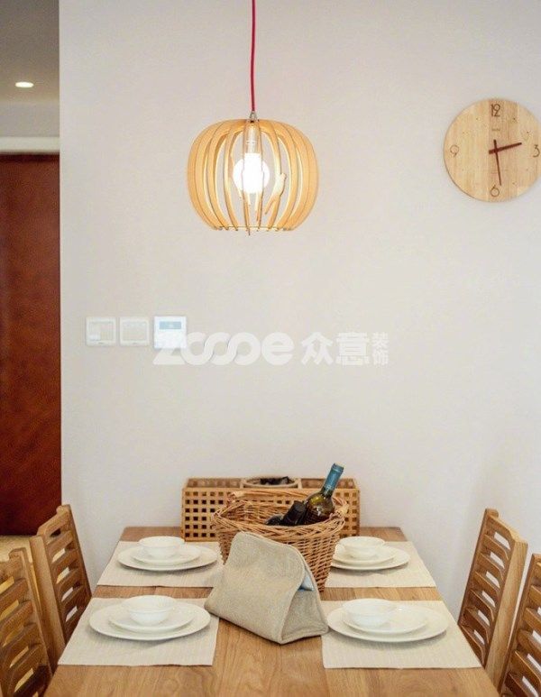 餐廳的原木元素體現(xiàn)在墻壁裝飾畫的邊框,木制的時(shí)鐘,還有餐桌和餐椅的材質(zhì)選擇,餐桌上方那盞吊燈的顏色選擇,也是貼近原木色。原木元素的巧妙體現(xiàn)讓餐廳溫馨十足。