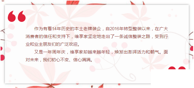 12月10日,維享家裝飾迎來14周年慶的第一波活動(dòng)落地,維享家具有超高性價(jià)比的透明整裝服務(wù),和誠意滿滿的周年慶活動(dòng)特惠,吸引了眾多消費(fèi)者來到現(xiàn)場,熱情的掌聲和歡呼聲將現(xiàn)場喜慶氣氛推向一個(gè)又一個(gè)高潮。
