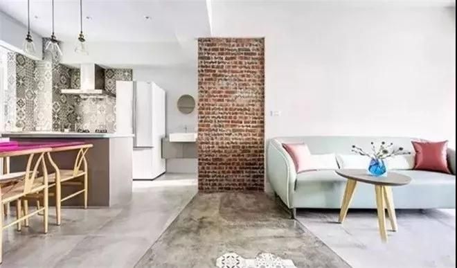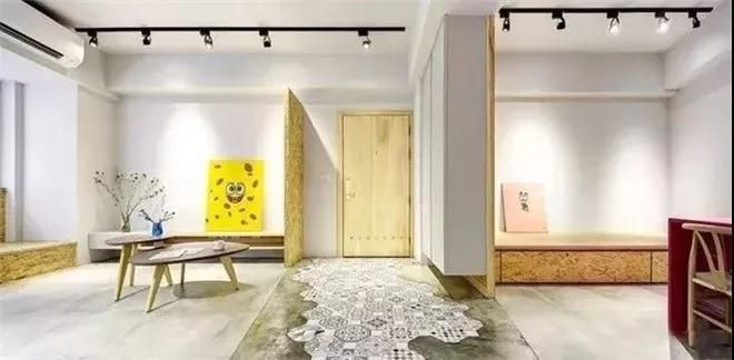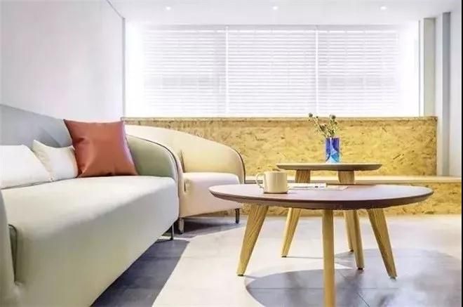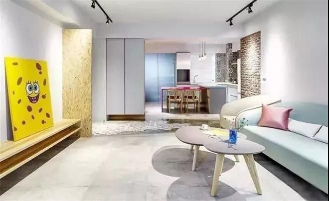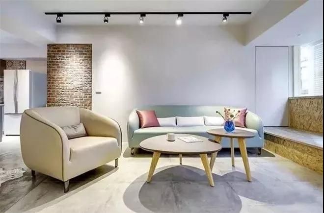 空間設計相當簡潔,大白墻,低飽和色系沙發(fā),有種軟糯的感覺,適合小女生。