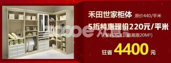 禾田世家柜體,原價每平米440元,5折特惠現(xiàn)價每平米220元,狂省4400元。