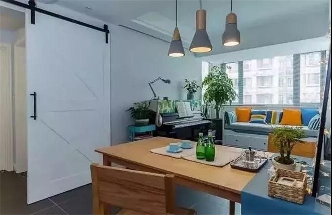 ▲餐廳靠窗的區(qū)域,做成了休閑區(qū)。藍橙色多彩抱枕隨意擺放,跳躍的顏色,為小窩增添一抹暖意,卡座旁擺上一架鋼琴,方便女主人練琴。