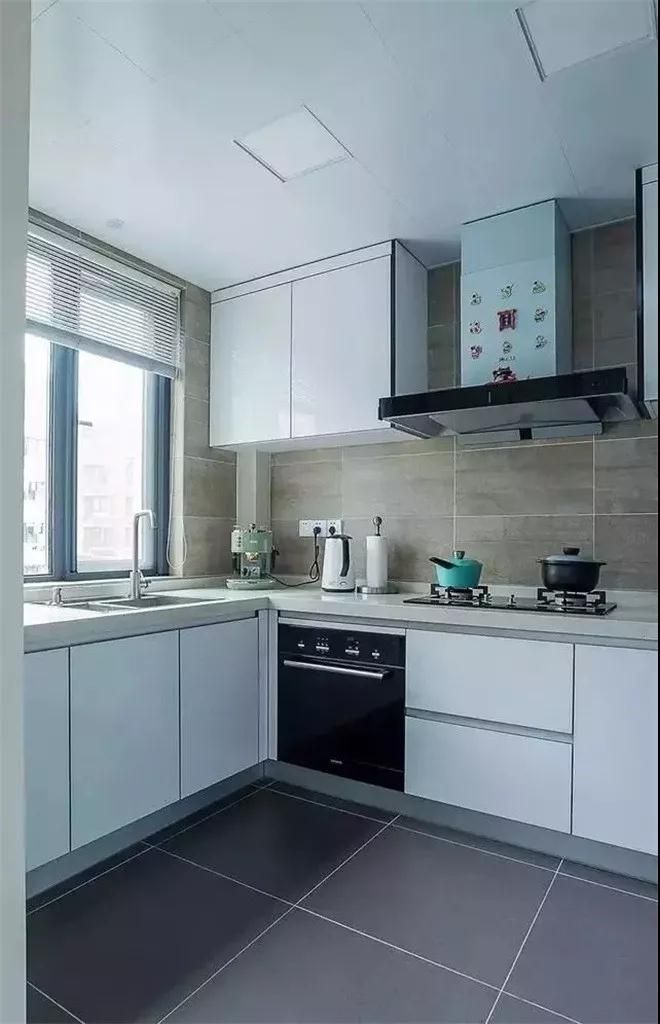 ▲廚房給人的感覺,就是,大方,潔凈,明亮。黑白灰可謂是經(jīng)典搭配,結合仿木紋墻磚,感覺整個空間都設計得特別精致。