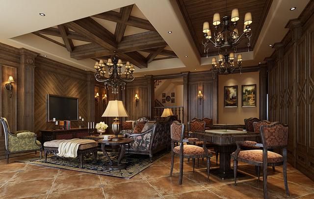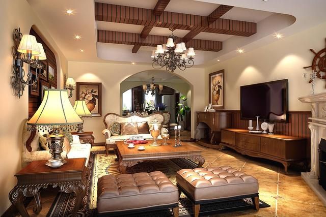 家居自由隨意、簡潔懷舊、實(shí)用舒適,暗棕、土黃為主的自然色彩。歐洲皇室家具平民化、古典家具簡單化,家具寬大、實(shí)用舒適,側(cè)重壁爐與手工裝飾,追求粗獷大氣、天然隨意。由于資源豐富,建筑家具實(shí)木居多。總的來說,美式更加注重實(shí)用,注重生活自由。