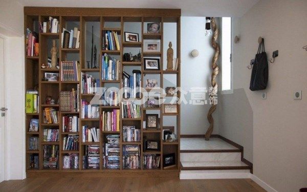 利用書架做隔斷,不僅避免了因隔斷的存在而浪費(fèi)額外的空間,反而方便了一些書蟲的需要。書架兩側(cè)也都可以放滿書。