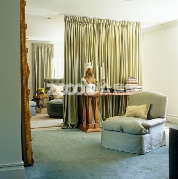 作為一種軟隔斷,色澤漂亮的簾幕將臥室分割成幾個(gè)不同機(jī)能的小空間。如需要,布簾隔斷就可以任意開啟,是彈性隔開臥室睡眠空間和公共空間的理想形式。