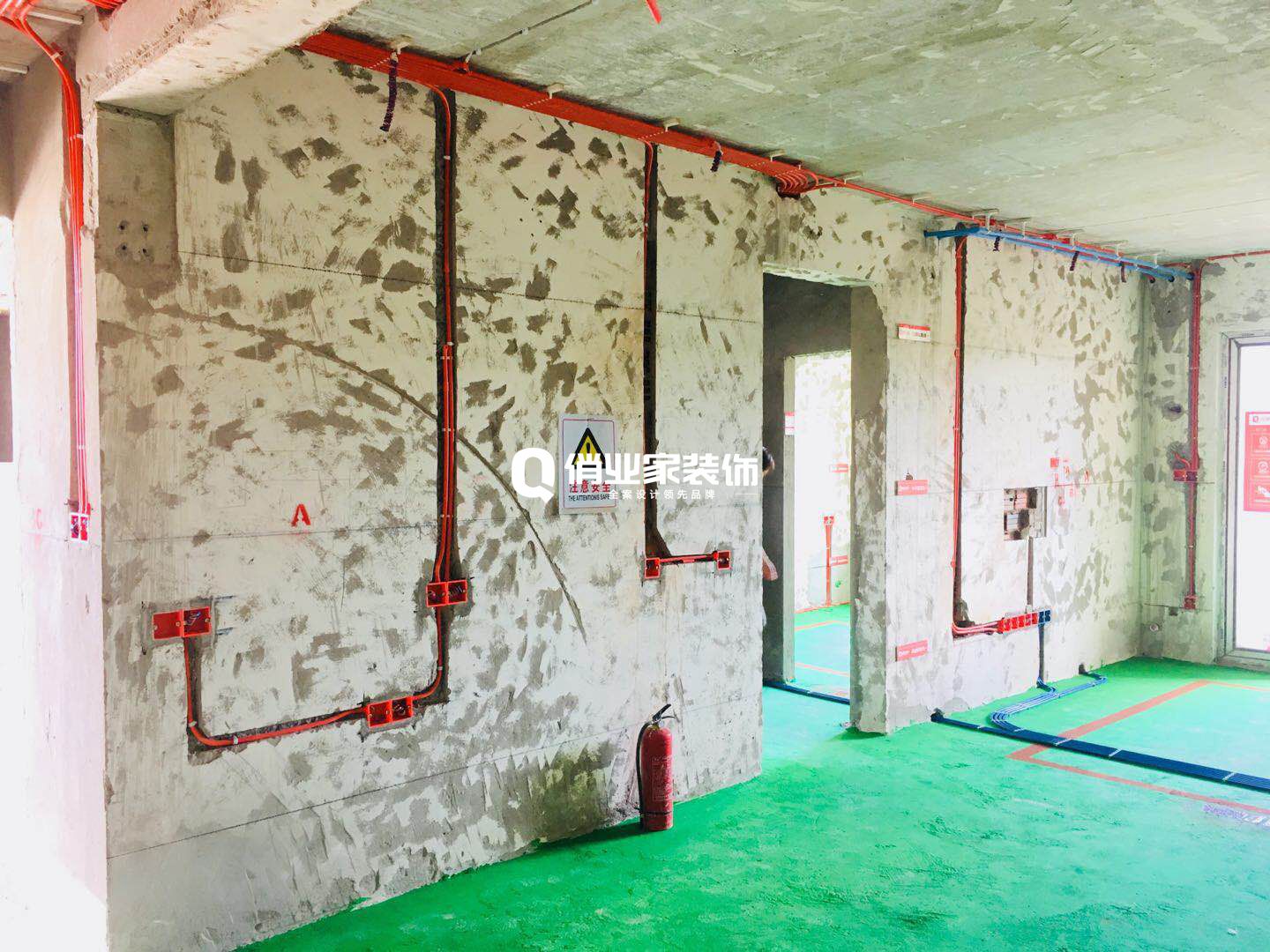 俏業(yè)家裝飾的每個工地必須貼上文明施工標識和配備達到國家標準的滅火器。