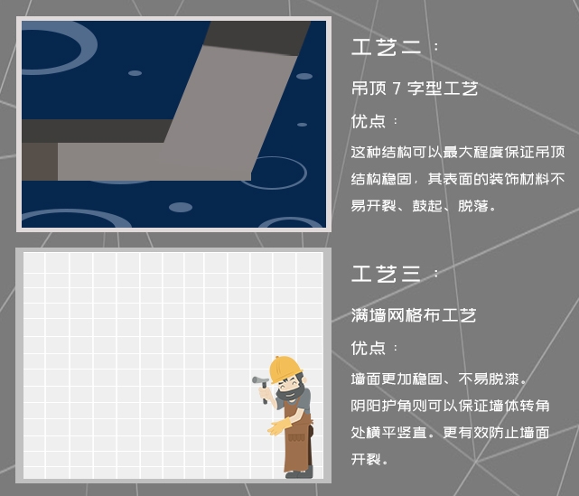 導讀:在整個裝修工程中,一套完整的施工必不可少的就是精湛的工藝,下面就來給您介紹一下我們佩奇裝飾的特色工藝