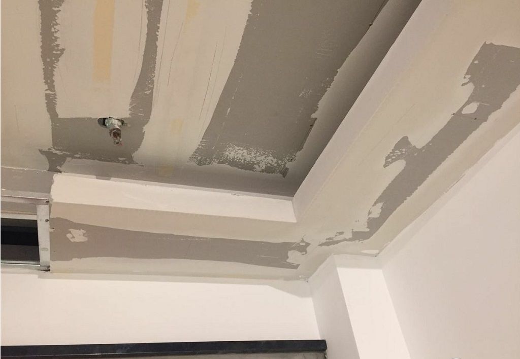 常規(guī)公司在吊頂施工過(guò)程中,針對(duì)轉(zhuǎn)角,一般使用兩張石膏板拼接而成,這樣后期接縫處乳膠漆會(huì)開裂,佩奇裝飾為解決這種問題,采用一整張石膏板處理,有效避免接縫的出現(xiàn),避免了后期轉(zhuǎn)角頂面乳膠漆開裂問題。