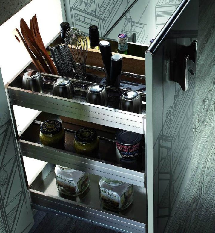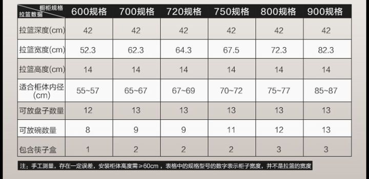 配件規(guī)劃 拉籃和碗籃都是提高廚房利用率的利器。 安裝調(diào)味籃預(yù)留位置,可以參考下面尺寸。
