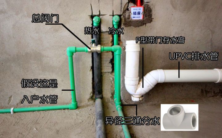 水電規(guī)劃 洗菜區(qū)水路規(guī)劃 水路規(guī)劃分為給水和排水。 給水里面走的是干凈的自來(lái)水,排水里面走的是生活污水。 給水(PPR管):一般進(jìn)戶水閥開發(fā)商都會(huì)預(yù)留在廚房,用三通分出水槽和其他地方用水管道,左熱右冷間距200mm,有吊頂?shù)脑捤芸梢宰咛臁?排水(UPVC管):在公共排水管道利用彎頭和水管接出到水槽下方。