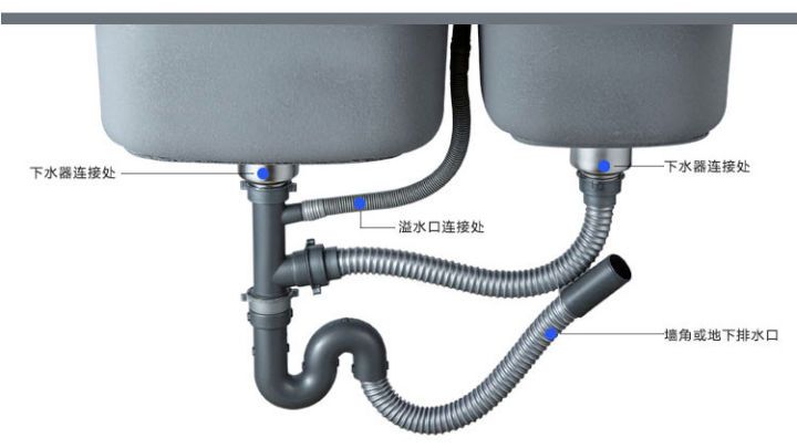 燃?xì)庠钭詈迷诠矡煹酪粋?cè),縮短管道。 水槽盡可能靠近主排水管,降低堵塞概率。