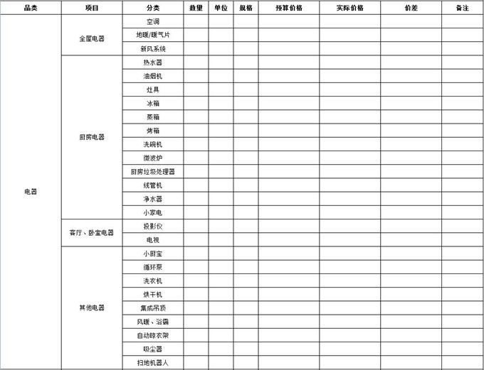 回家以后,就可以進行表格補充,初步完成裝修預算的初安排,大多你會發(fā)現(xiàn)“我超支了!”。這時我們就要進入到下一步了:
