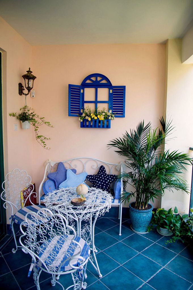如果是陽臺面積較大又位于頂樓,應(yīng)該屬于“露臺”??稍陉柵_上加上透明的弧形采光頂,就可使陽臺當(dāng)作房間使用。陽光通過采光板灑向用韓國文化石做的墻壁,以及青石板鋪成的地面,而且也照亮了“人”字型的鵝卵石小徑……這些園林造景手法,用在陽臺上,會給人濃濃的休閑氣息。